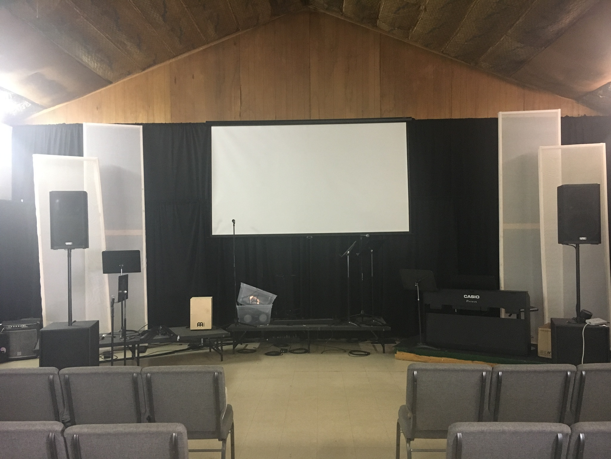 With renovation plans underway, we moved out of our worship space and into the adjacent Fellowship building for our Sunday services. Last Saturday, we had a fantastic group of people prepare one building for renovations and retrofit the other building for a temporary worship space. We even had a few who couldn't make it Saturday come out during the week to work. We have an excited and committed group of people. They worked hard and did a great job to make sure our first service in the Fellowship building was successful.